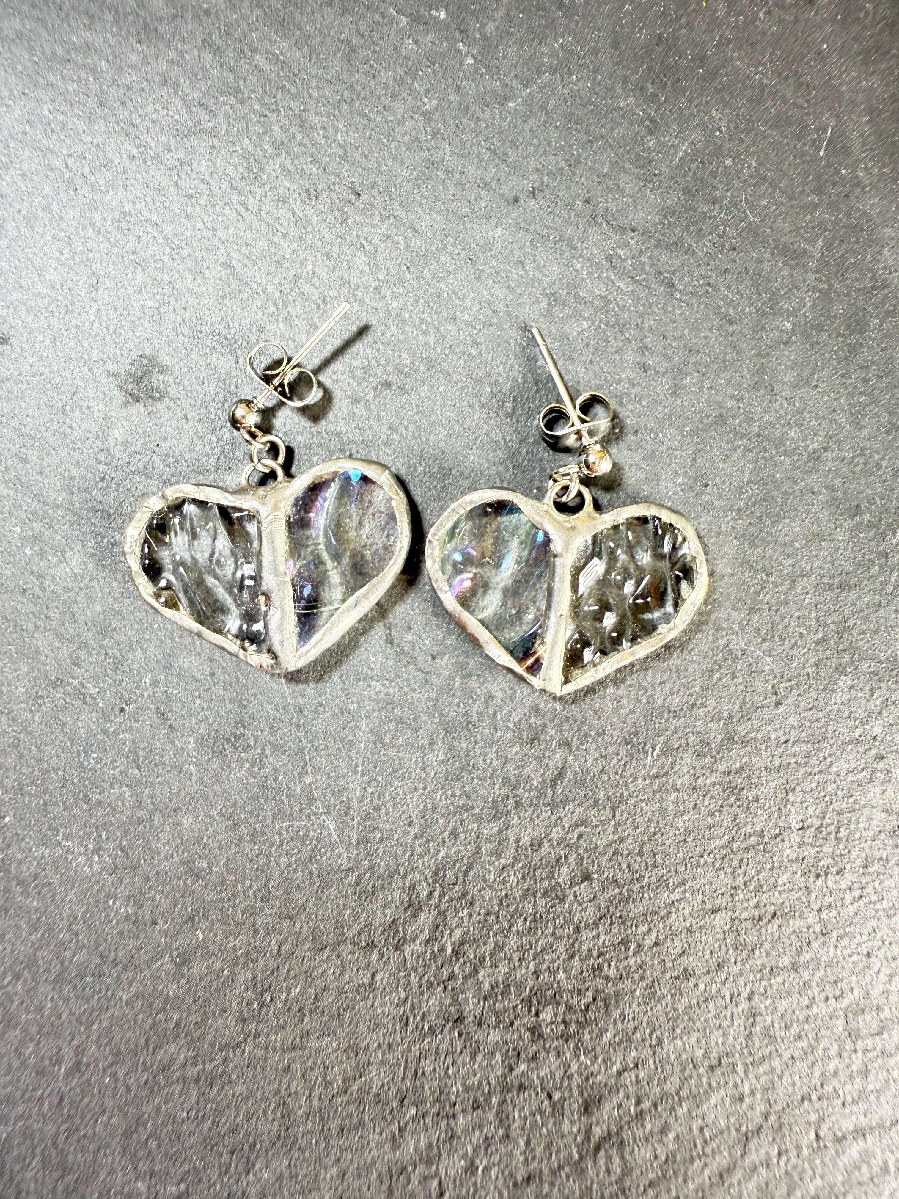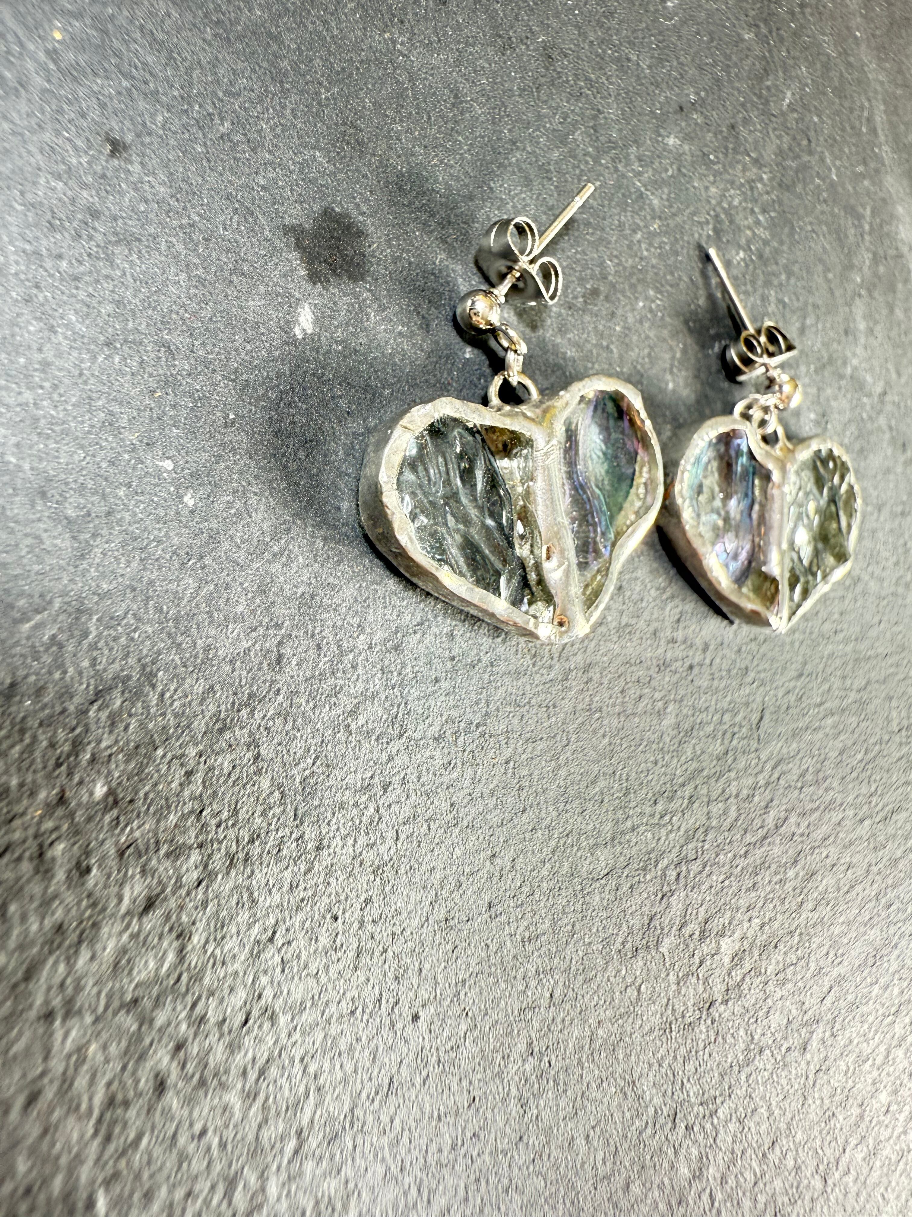 柔らかな光を透かす、アンティーク調のハートピアス。