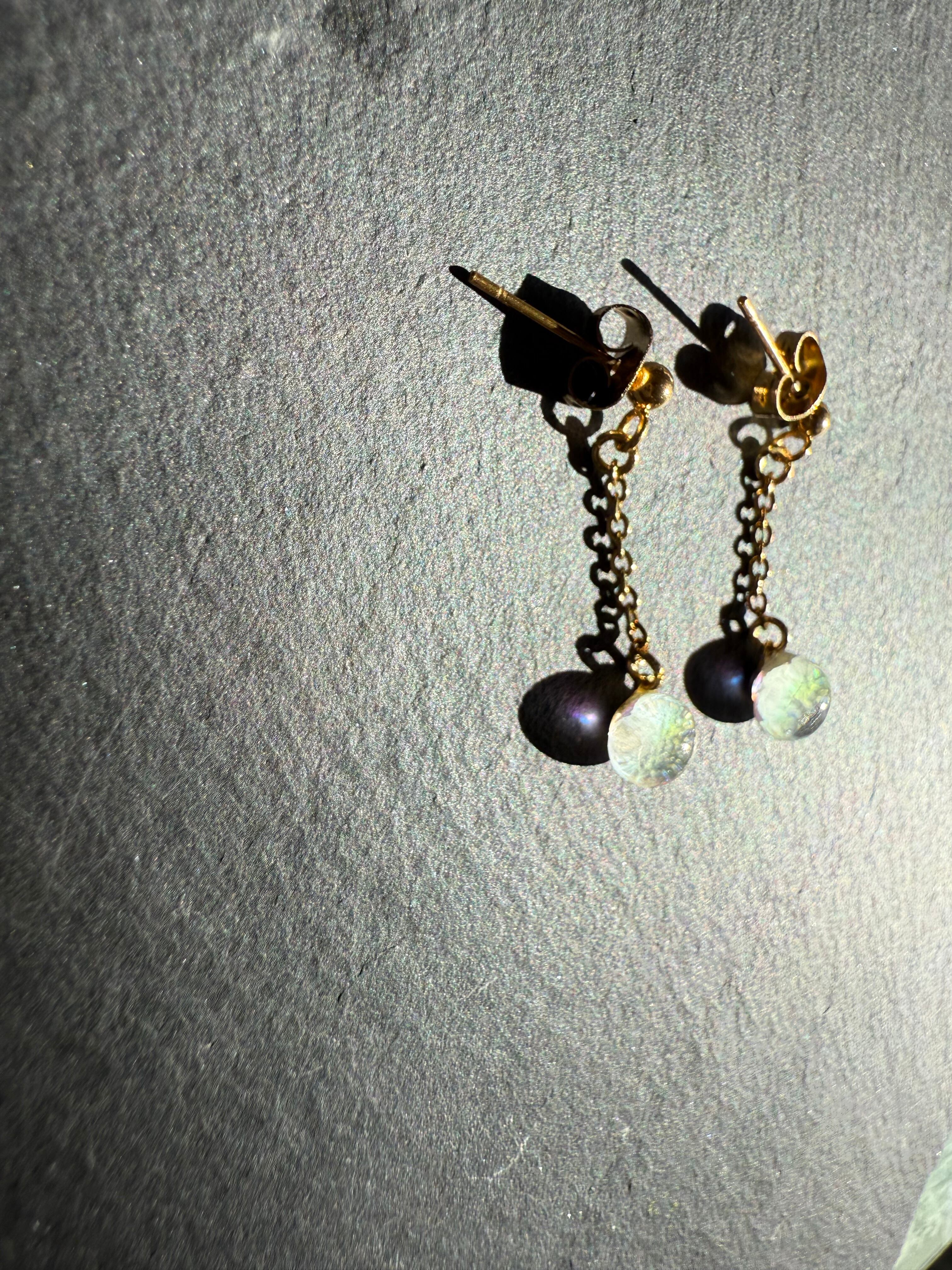 繊細な光の粒を閉じ込めたような、クリアガラスのしずくが揺れるピアス。
