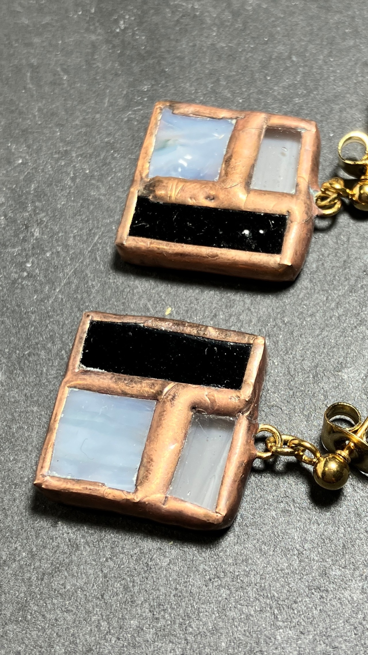 3つのガラスを四角形になるように組み合わせてステンドグラスの手法で仕上げました。