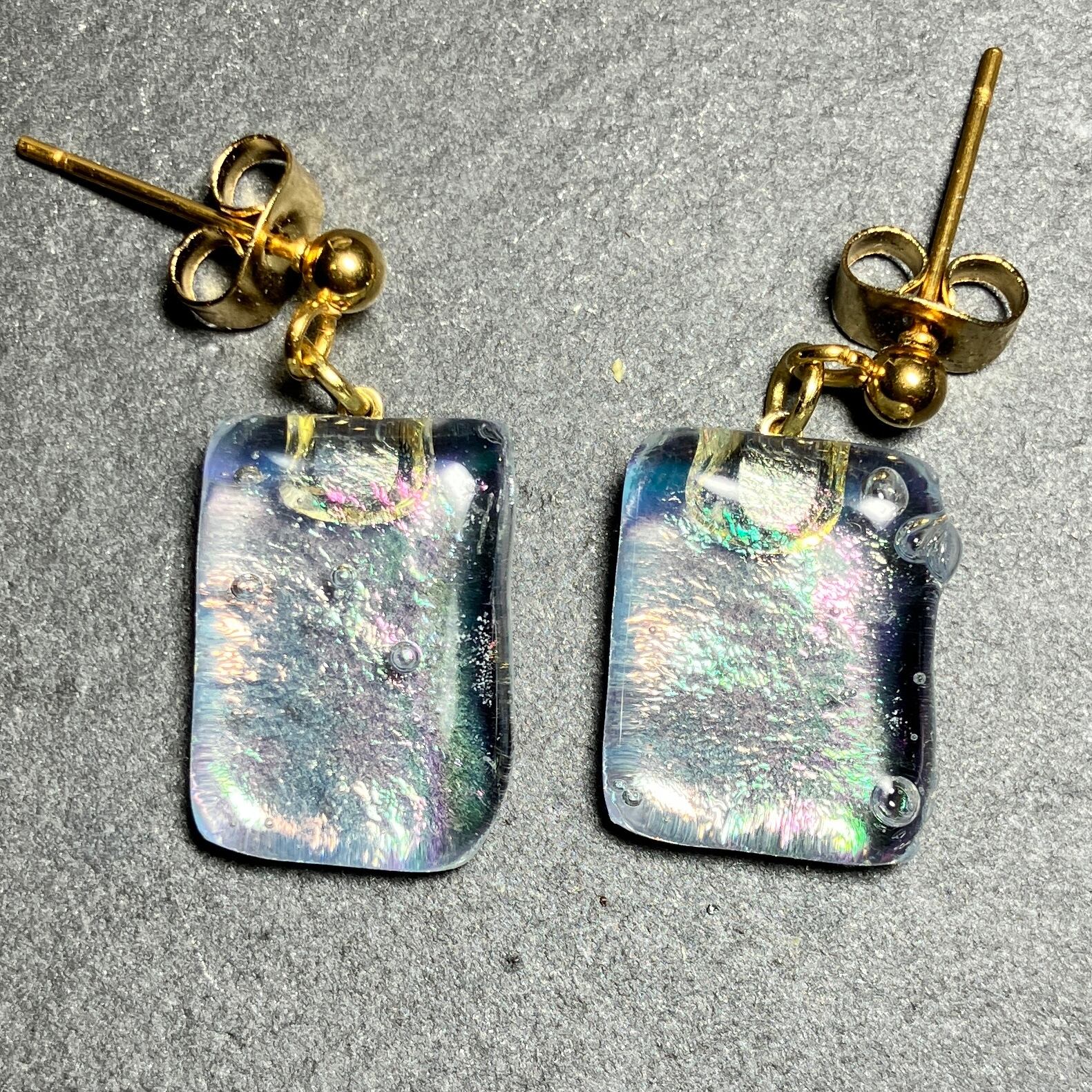 クリアのオーロラに光るガラスを少し形が残るように時間調節して焼きました。