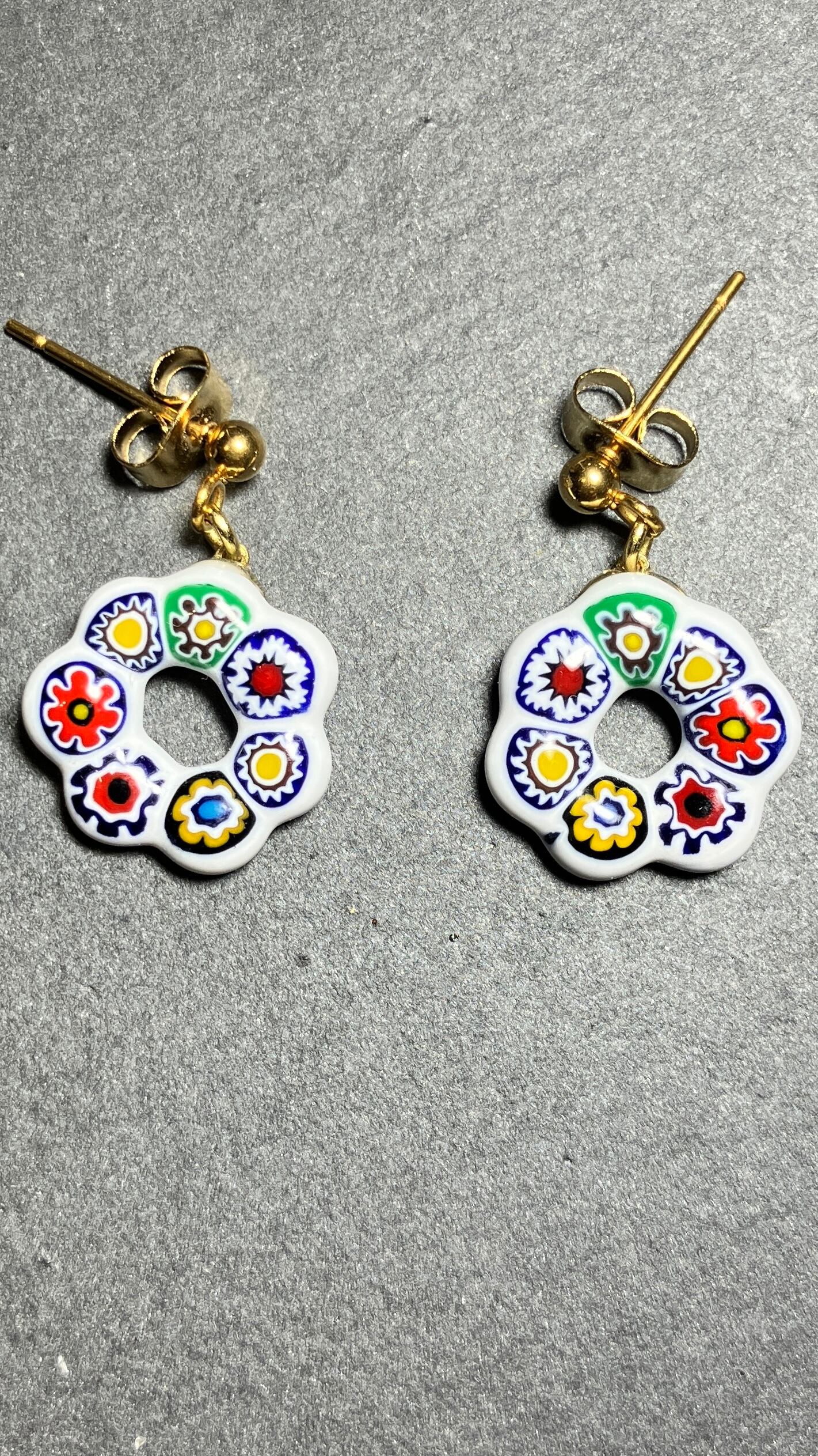 ベネチアンガラスのミルフィオリを丸く並べてドーナツのように焼いて形にしました。