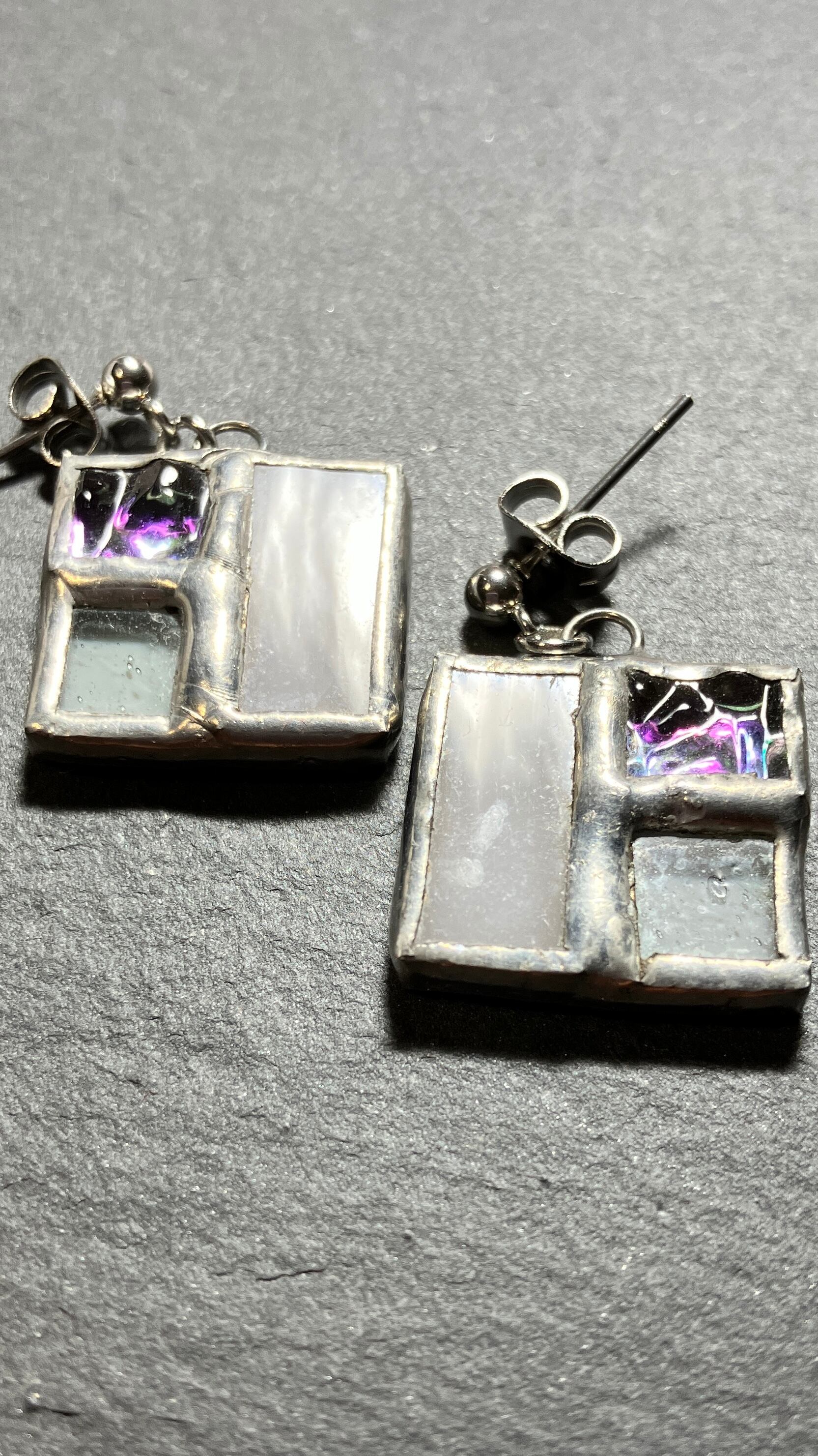 3つのガラスを四角形になるように組み合わせてステンドグラスの手法で仕上げました。