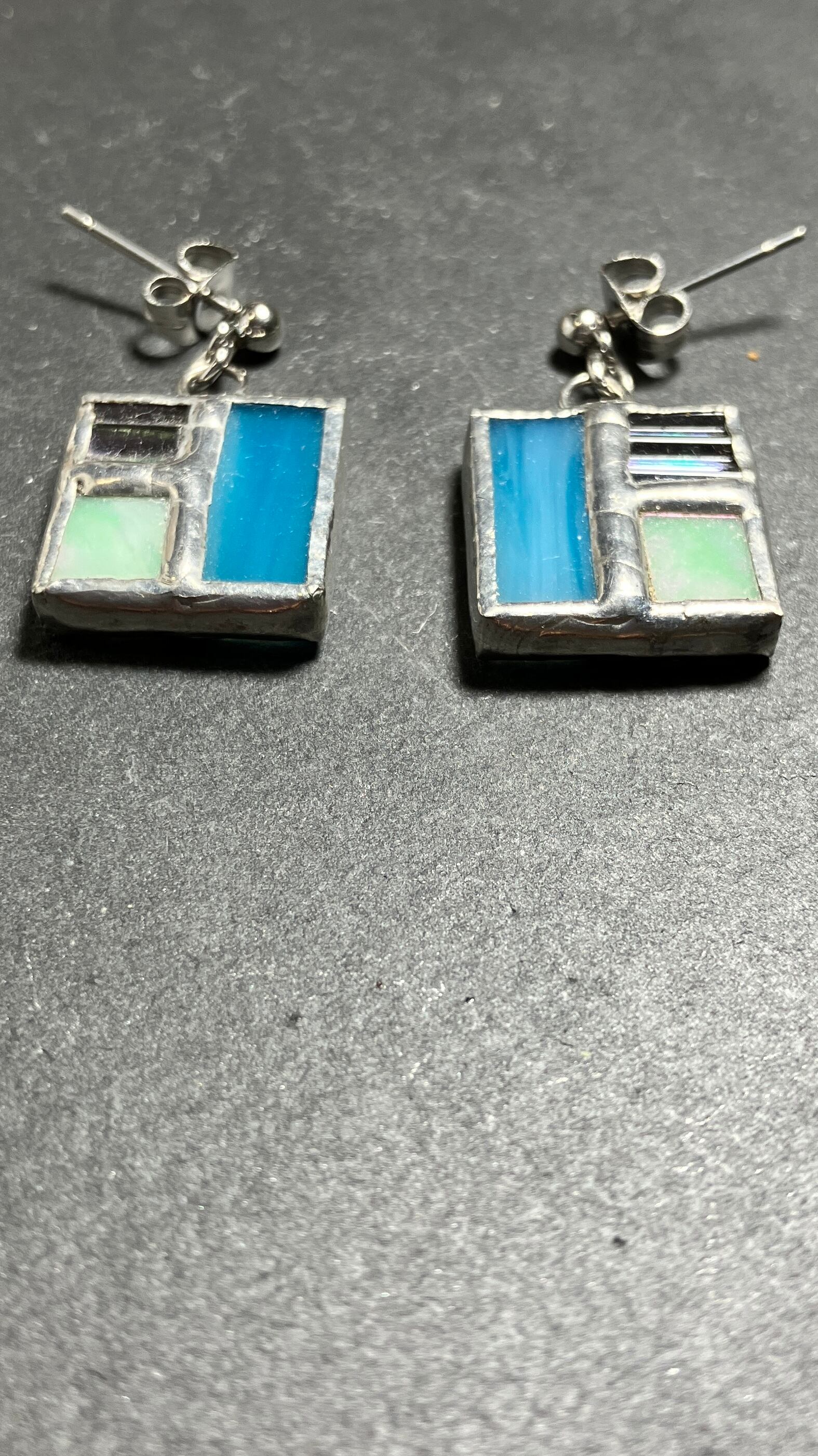3つのガラスを四角形になるように組み合わせてステンドグラスの手法で仕上げました。