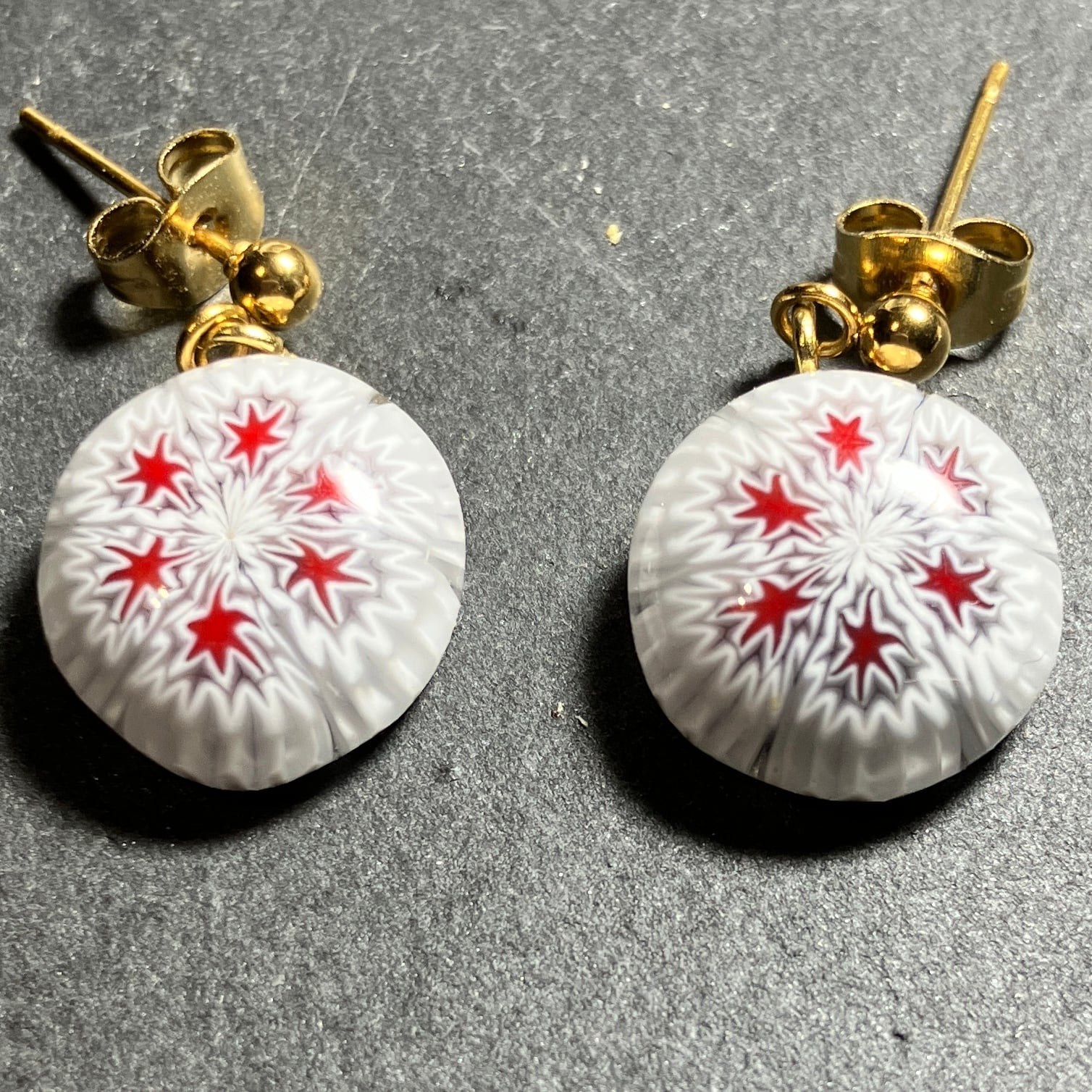 7つの白ベースのミルフィオリを並べて丸く焼き上げました。