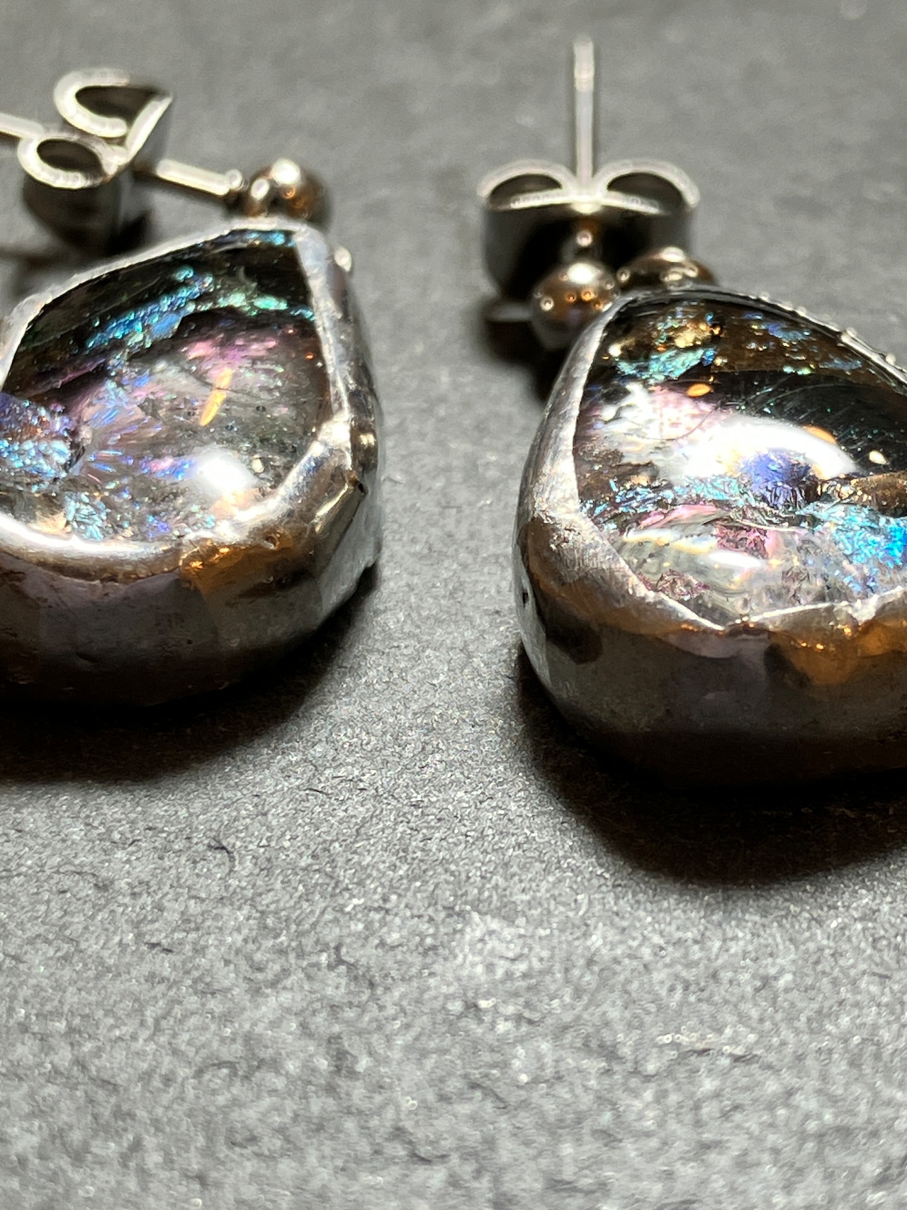 細かくカットしたダイクロガラスを組み合わせて焼き上げて、ティアドロップの形に整えました。