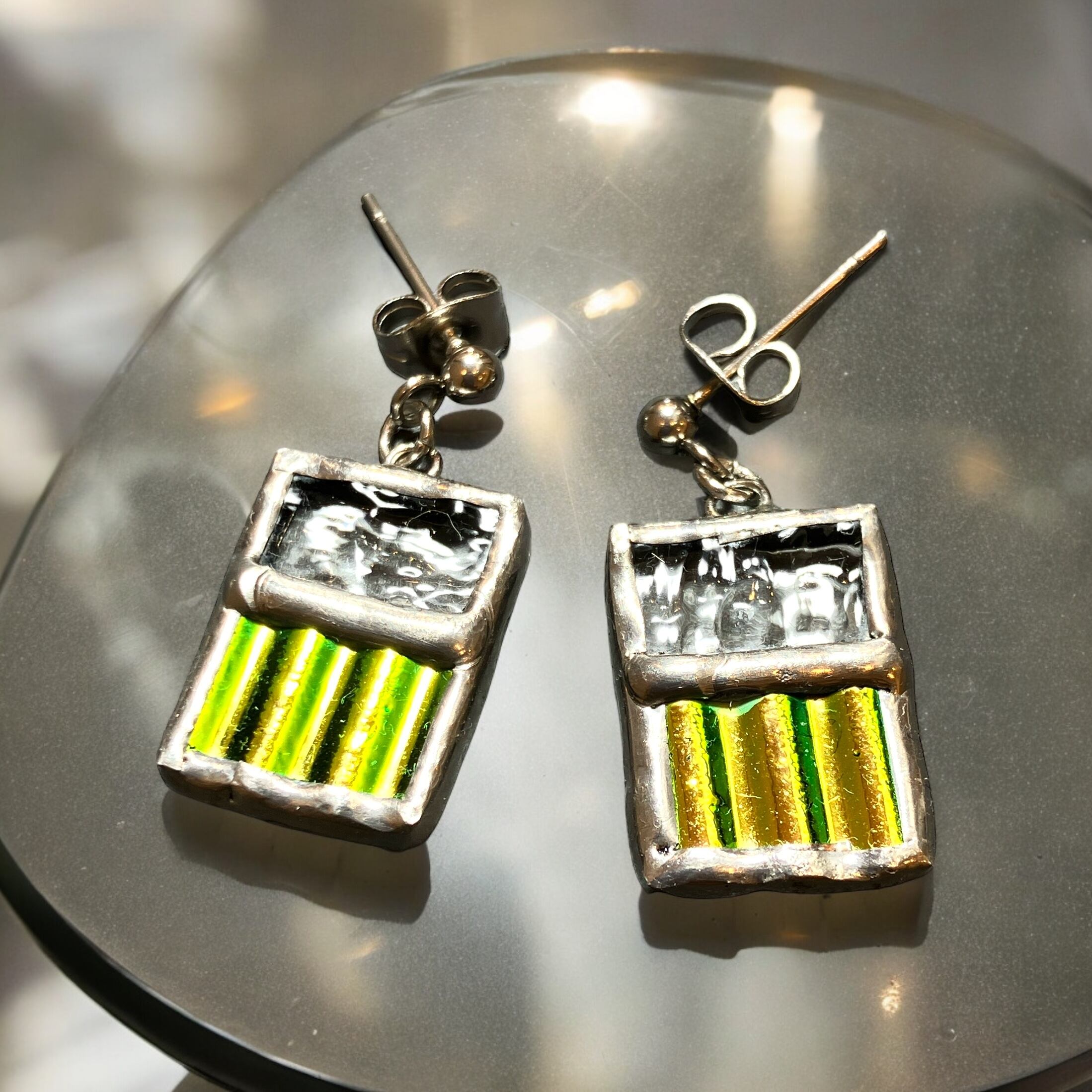 ダイクロガラスは緑系の色ですが角度によって色味の見え方が変わります